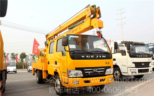 国四南京跃进14-18米高空作业车整车型号:CLW5060JGKN4型高空作业车,底盘型号:NJ1080DCJS4,轴距:3800mm,底盘采用 南京跃进帅虎大双排驾驶室(驾驶室不可翻转),国四扬柴YZ4DA1-40/130马力带增压发动机,车架:铆接铆接190×70×6.0,变速箱:南京六合17H35,前桥2.7吨后桥5.2吨,汽刹,7.50-R16钢丝胎,原厂助力,空调;